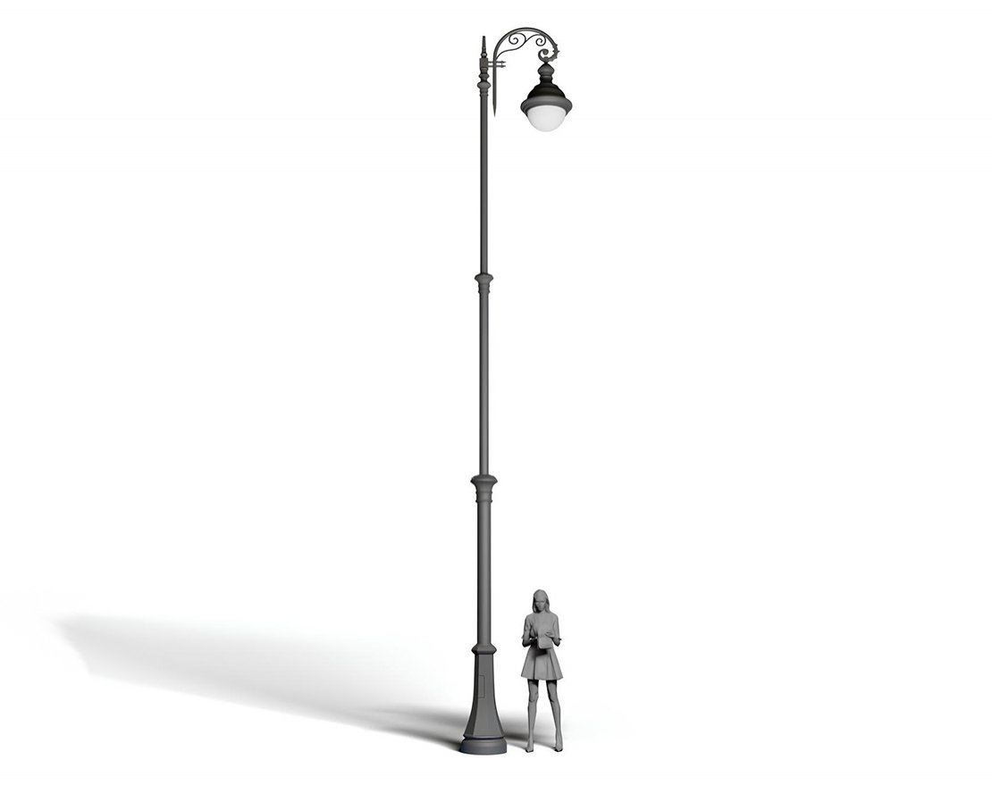 Производится путем бетонирования закладной детали с последующим креплением к ней стойки фонаря болтовым соединением.